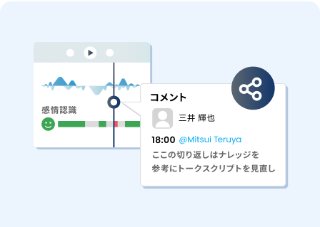 トーク内容のスコアリング機能があります。ゲーム感覚でトークの質が向上するようになります。また、担当者のモチベーションアップにもなります。スコアリングのアルゴリズムはお客様にて自由に設定可能です。